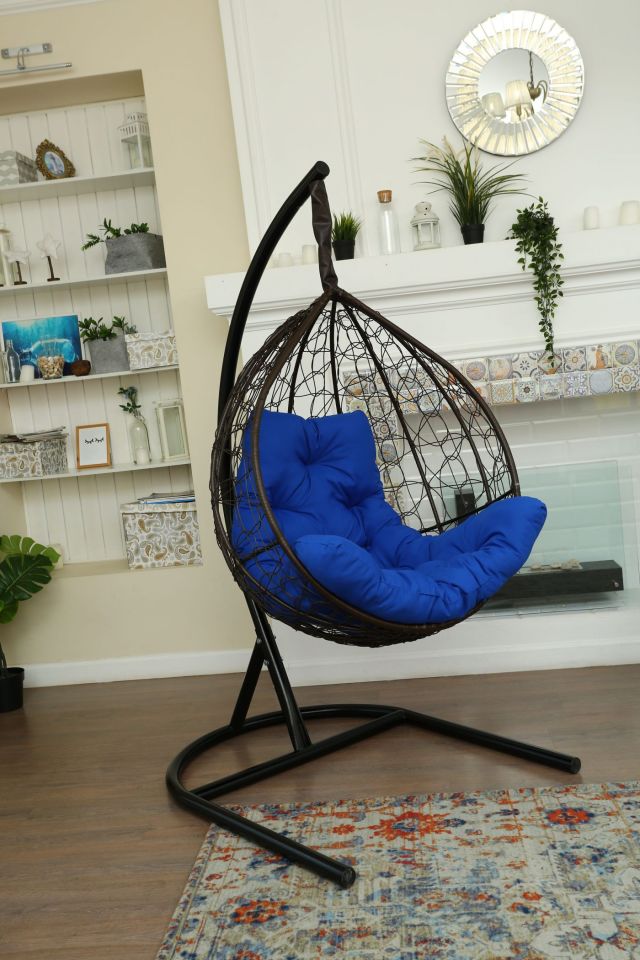 Стойка - стальная диаметр 51 мм, толщина 3 мм. Покрытие порошковой краской. Кокон - стальной каркас с оплетенным экоротангом. Подушка из Габардиновой ткани.